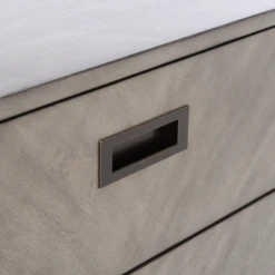 Mid Century chic meets contemporary class in this sophisticated Anson 6 Drawer Dresser. The herringbone inspired pattern on Anson’s solid wood frame in a light grey finish with an acacia veneer makes for a look thatās always in vogue. Subtle bronze pulls add a soft, glamorous touch.