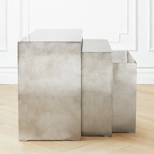 The sleek minimalist lines of our sophisticated Astair Nesting Tables are interpreted as a little more glamorous with a shiny metallic finish of stylish silver leaf.