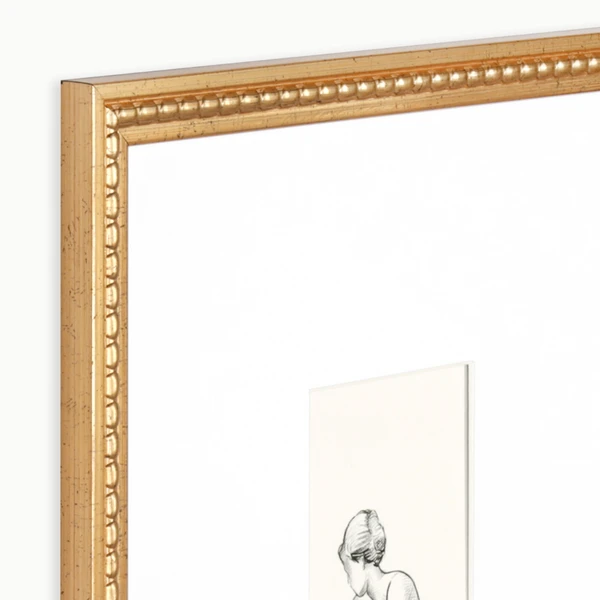 Bare is a framed graphics under glass with gold beaded profile frames.  Set of 2.