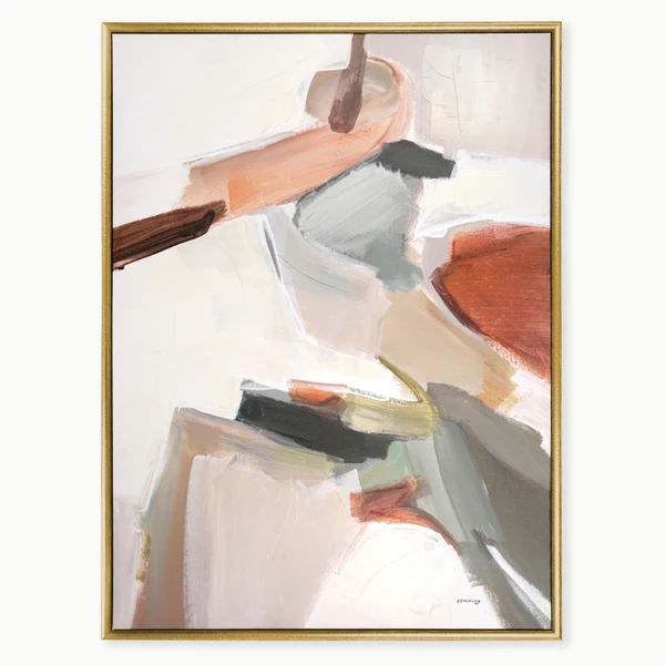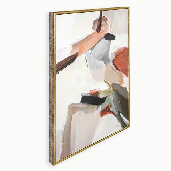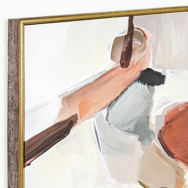 Copper Cap is a gallery wrapped canvas with hand-applied pallet knife embellishment and set in a warm wood tone with hammered gold (2 tone) floater frame.