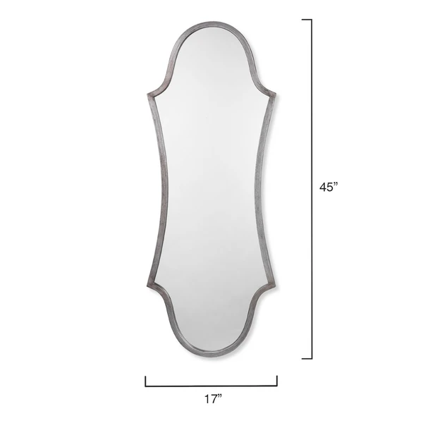 Our Fairest Mirror is a antique silver metal mirror with stylish edging making it sophisticated and glamorous.