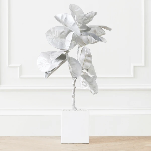 Graceful leaves, loves the indoors, super low-maintenance. This impressive (more than 3 feet tall) faux banana leaf plant comes pre-potted. You get gorgeous greenery with a modern pop of silver, all in one. No water or sunlight required.