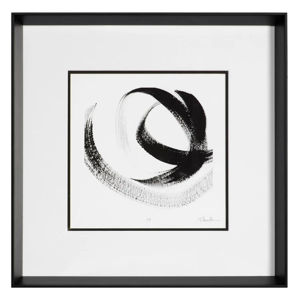 Striking in black and white, this limited-edition abstraction from artist Sharon Chandler is set off with a white mat and displayed in a black frame.