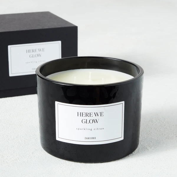 Presented in a black glass vessel with a tonal leopard print and sassy saying, this triple-wick candle features a bright sparkling citron scent and arrives in a handsome box, ready for gifting.