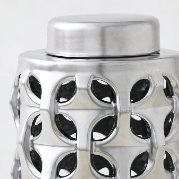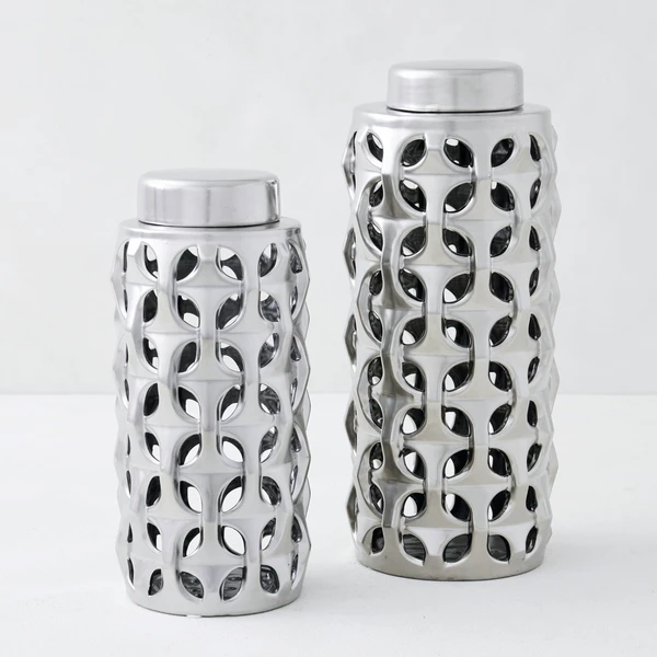 The Magna Colletion brings your space together with a modern, matte aesthetic. Ceramic vases and coordinating canisters are designed with art deco inspired pattern. Sold separately.