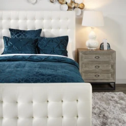 Elegance in a nightstand. Round out your room with a whitewash finish that still manages to be edgy thanks to dark metal accents (and create more room to store accessories).