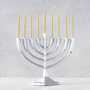 Finished in silver, this clean-lined menorah brings a sleek, modern touch to the holidays.
