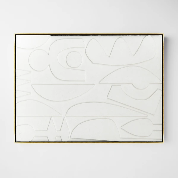 This piece by Nikki Chu is stunning and unique. A vision in monochrome, All White I will add texture and dimension to your wall. Layered birchwood is 100% hand-painted and framed in gold. Hang vertically or horizontally. Complete the look with All White II.