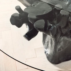 Invite natural looking elements into your home with our Sequoia Dining Table. Carefully cast from the roots of an Acacia tree, our Sequoia Dining Table brings sculptural detailing to its surrounding décor. Molded out of resin in a multi-step process, our Sequoia Dining Table is finished with real polished stone fragments and artisan grade resin resulting in a durable refined coating. A sixty inch round glass table top completes the table, allowing for easy viewing of the stunning organic display below.