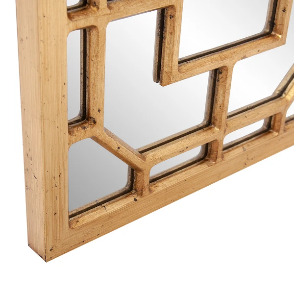 Featuring an intricately detailed lattice overlay design, this wall mirror exudes classic English style. A gold finish tops off the look.