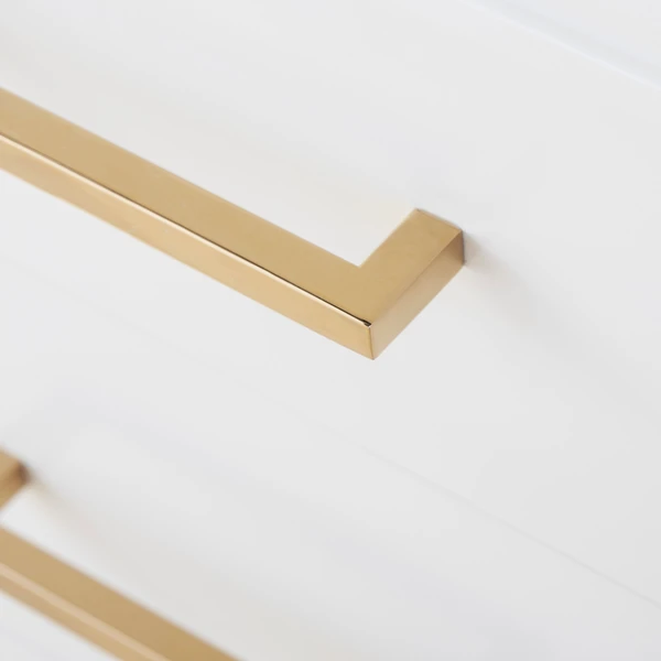 The design of our York Collection harmonizes a distinctive mix of materials, creating a highly stylized design influenced by Greek Key fretwork. Each piece comes with a complete set of both gold and silver finished drawer pulls to suit a variety of dƩcor settings.